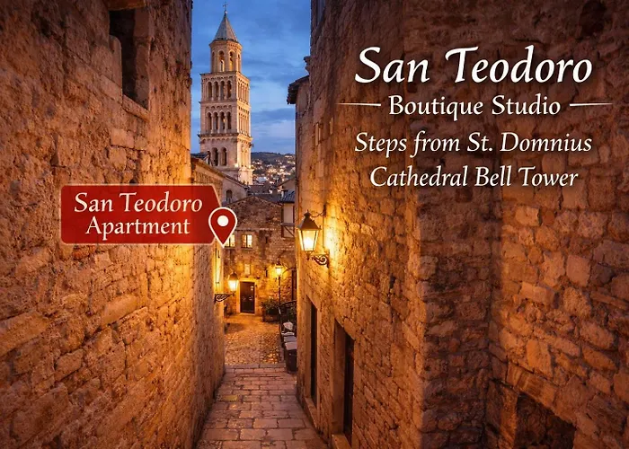 - ❓האם יש אתרי תיירות קרובים לSan Teodoro דירה?אתרי תיירות ליד San Teodoro דירה כוללים את ארמון דיוקלטיאנוס וRiva.